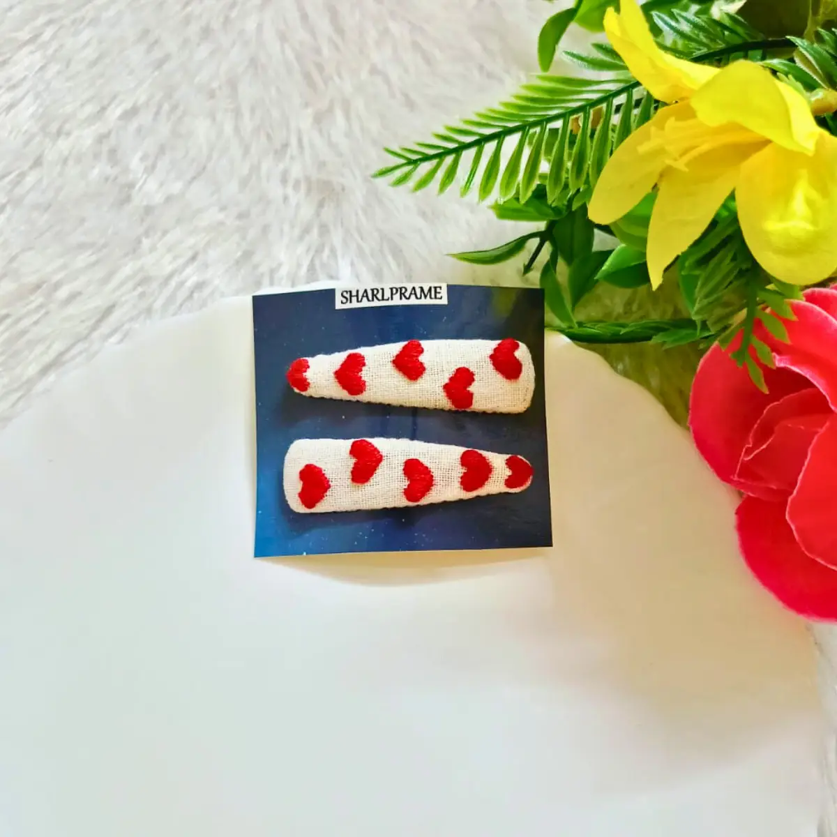 Charming Hair Clip for daily wear and special occasions. Customised Embroidery Hair Clip can be designed for easy use. Embroidery Hair Clip is designed to decorate the hair, adding a stylish touch to the wearer’s outfit. Stylish and elegant design. Made with high-quality fabric. Decorated with beautiful embroidery.  Adds a unique and personalized touch. Great as a gift for all ages.