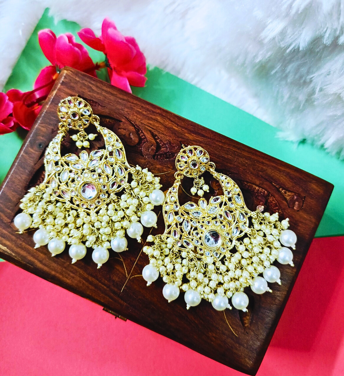 - Color: Gold, Material: Alloy, Stone: Kundan & Pearls