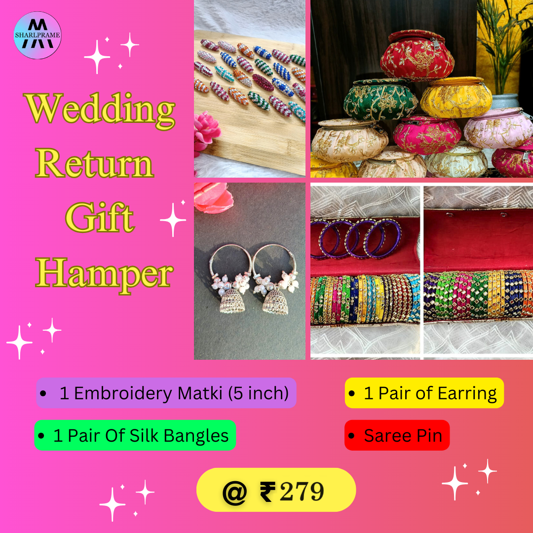 Celebrate the cherished moments of your special day with our exquisite SHARLPRAME Wedding Return Gift Hamper, meticulously curated to embody elegance and tradition. Each hamper is a delightful fusion of timeless adornments, promising to captivate hearts and leave a lasting impression.